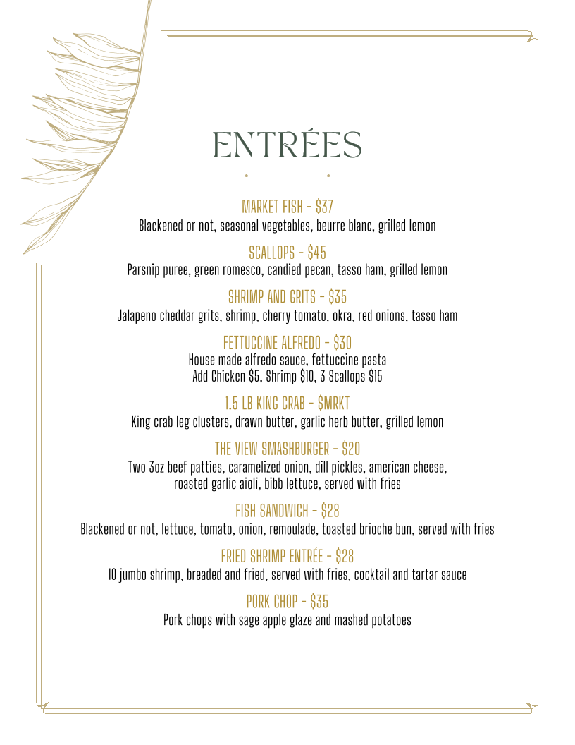 Welcome to The View at St Joe Bay, where culinary excellence meets breathtaking scenery. Nestled in Port St Joe, FL, this eatery is carving a niche for itself with its innovative menu and a stunning backdrop. Led by Chef KC, the menu is a delightful blend of Asian-inspired dishes upstairs and rich Southern steak and seafood selections downstairs.